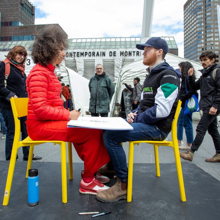 De retour au Canada, je laisse le matériel en Tunisie pour éviter les excédents de bagages. Ma mère lit le cahier de la résidence de création et le montre à un éditeur. Deux ans plus tard, les dessins sont exposés à la galerie de l’Agora de la Marsa en même temps que la sortie du livre d’artiste.